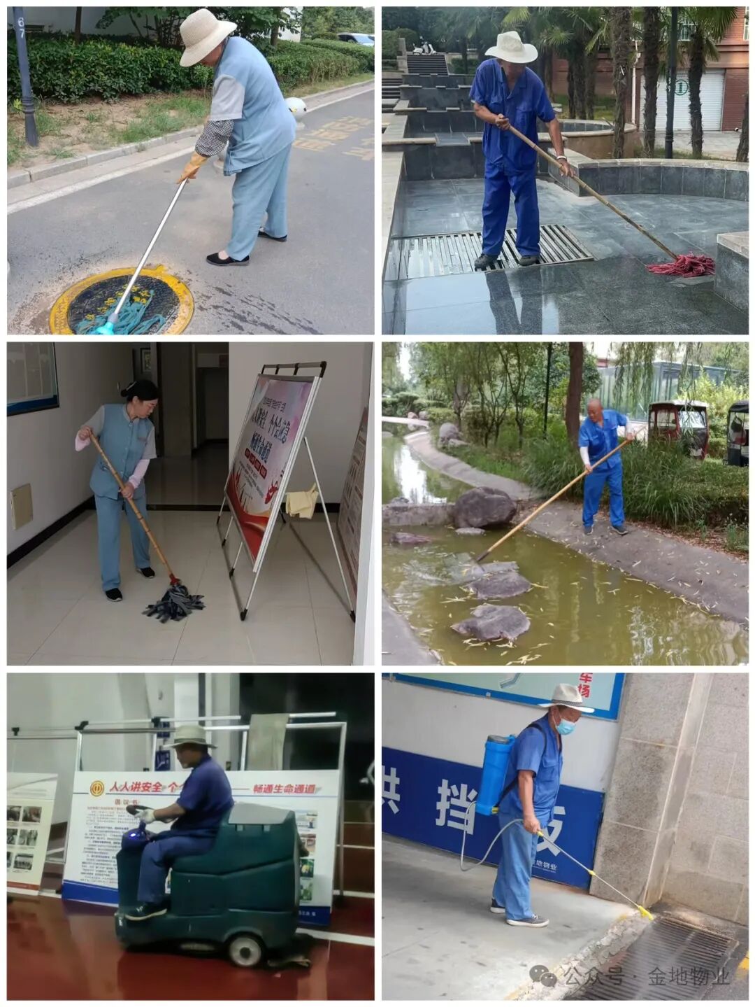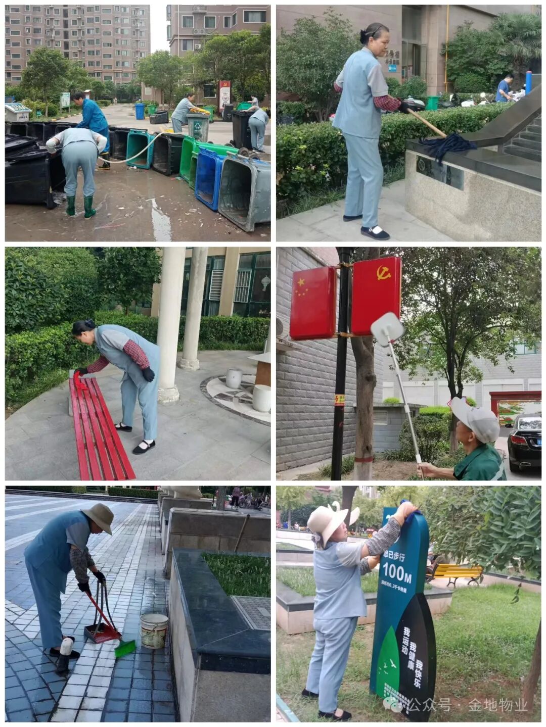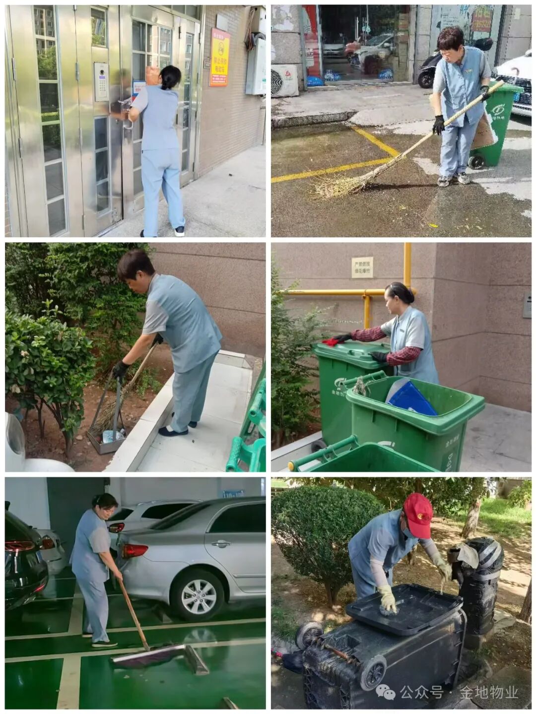 保洁团队始终坚守岗位,为小区的清洁与卫生默默付出。楼道、电梯间、地下车库,他们认真清扫每一个角落,垃圾桶定期清洗、消杀,杜绝异味和细菌滋生;用勤劳的双手,为业主营造了一个清新、舒适的居住环境。