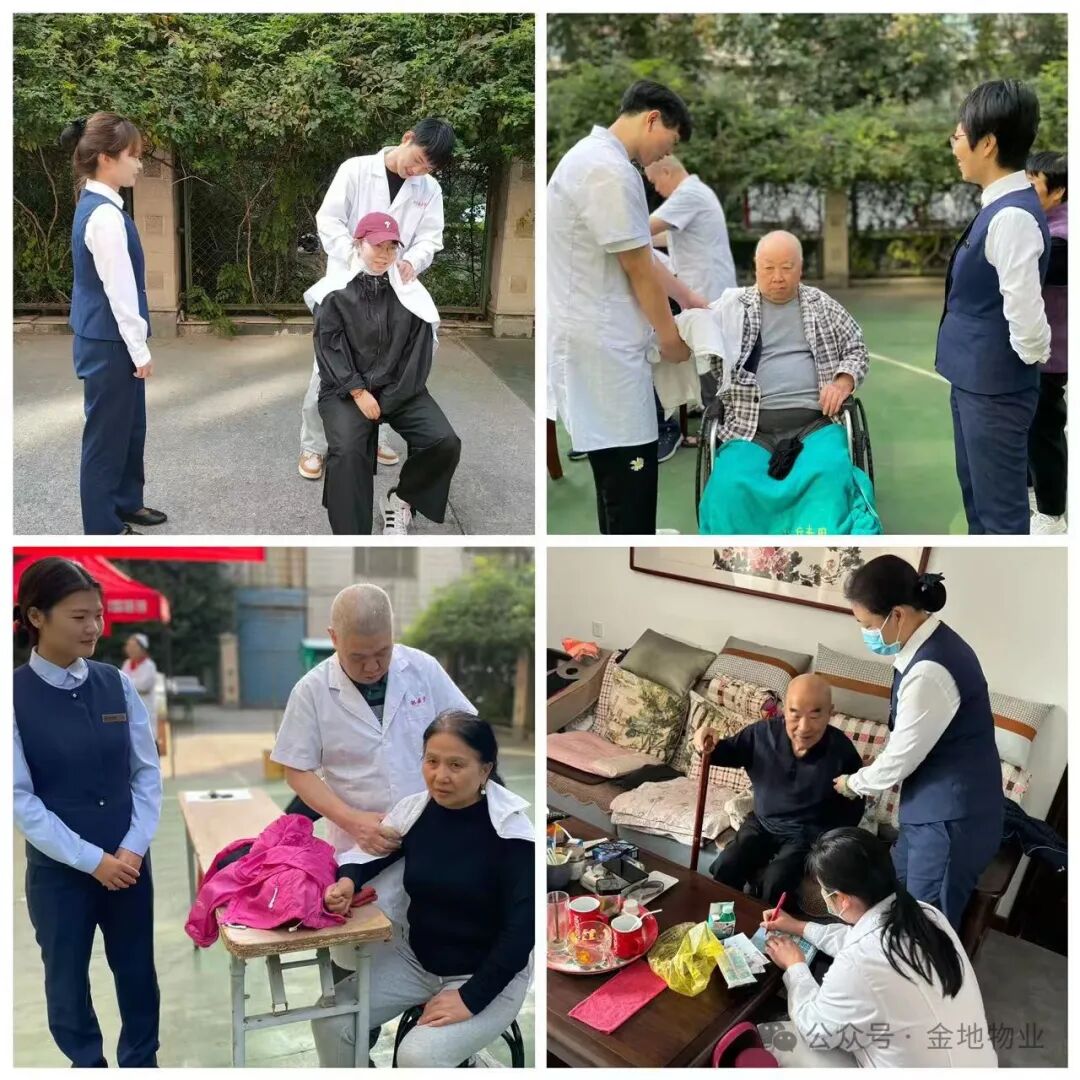 在重阳节来临之际,为增强社区居民的健康意识,倡导健康生活方式,10月10日上午,金地物业举办了“情暖重阳节,健康进社区”爱心义诊活动,为业主提供免费测血压、血糖检测、中医推拿、健康咨询等服务,确保业主获得专业、贴心的健康指导。