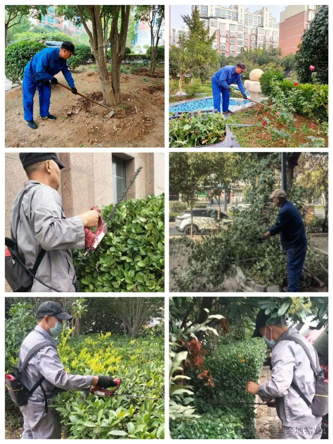 绿化养护人员对小区苗木计划修剪,树木浇灌,清除杂草,杀菌打药,打造舒适的居住环境。