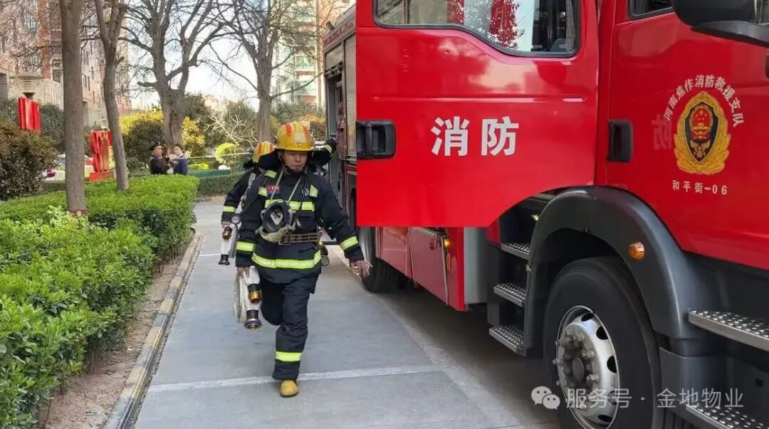 为进一步强化全体物业工作人员的消防安全意识,提升员工应对突发火灾的应急处置能力,为业主的生命财产保驾护航。3月21日,金地物业联合山阳区消防总队、东方红街道办事处,在远大南北苑组织开展"消防连万家,平安你我他”消防安全演练活动。物业工作人员及消防员参与演练,通过“理论+实战”沉浸式教学,为社区安全注入“强心剂”。