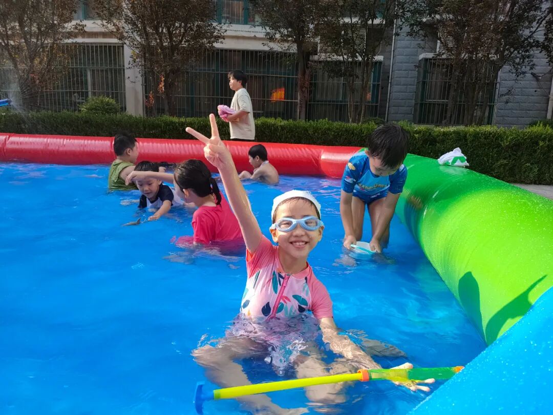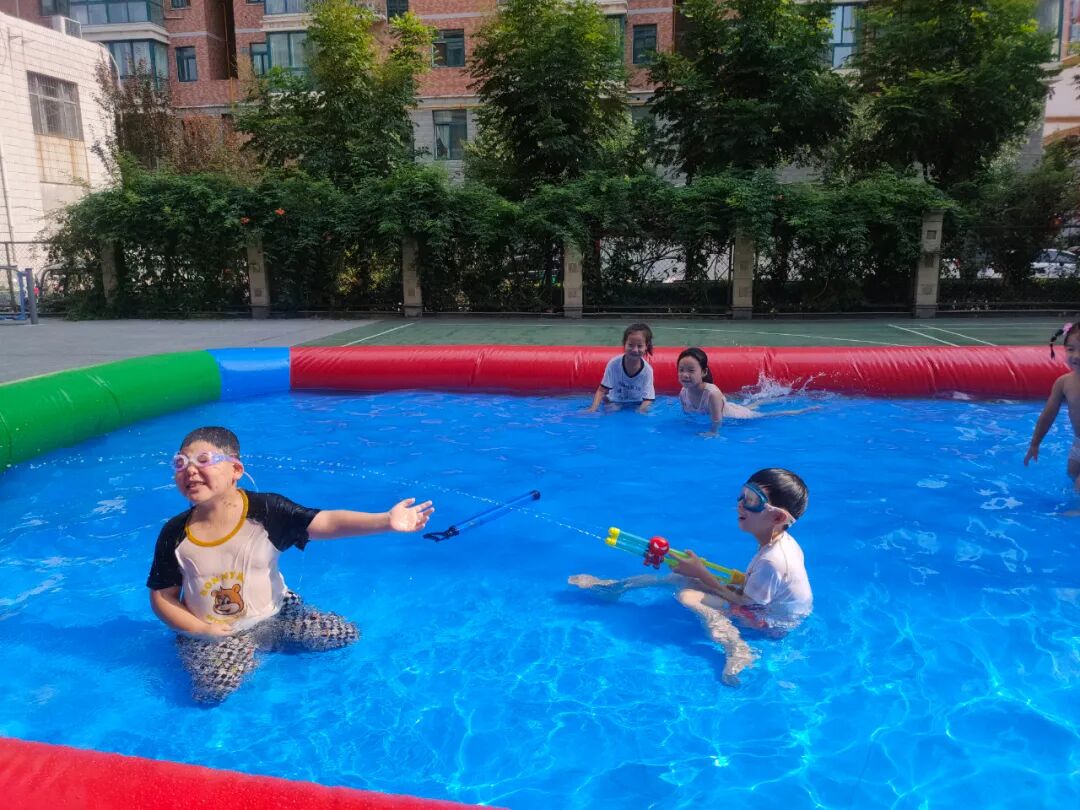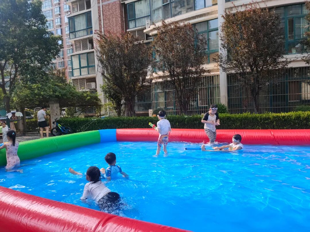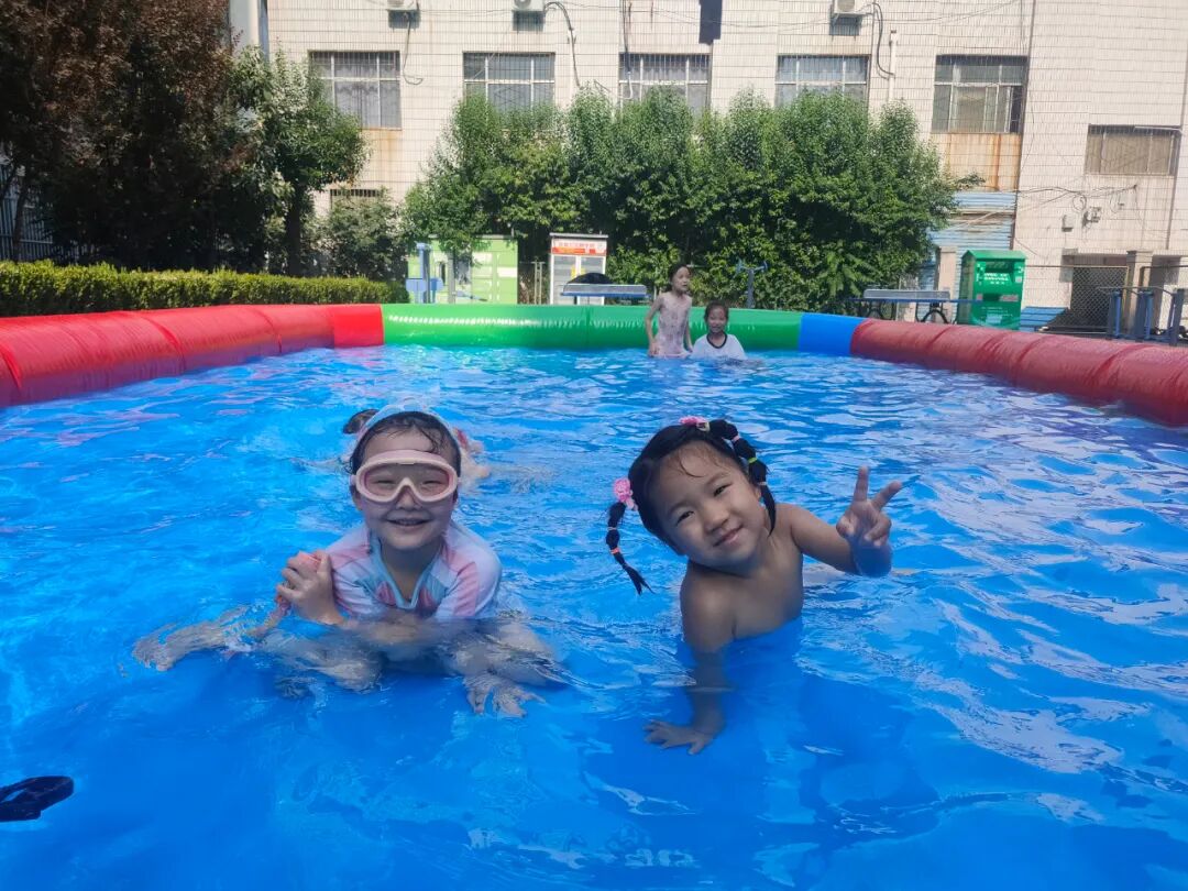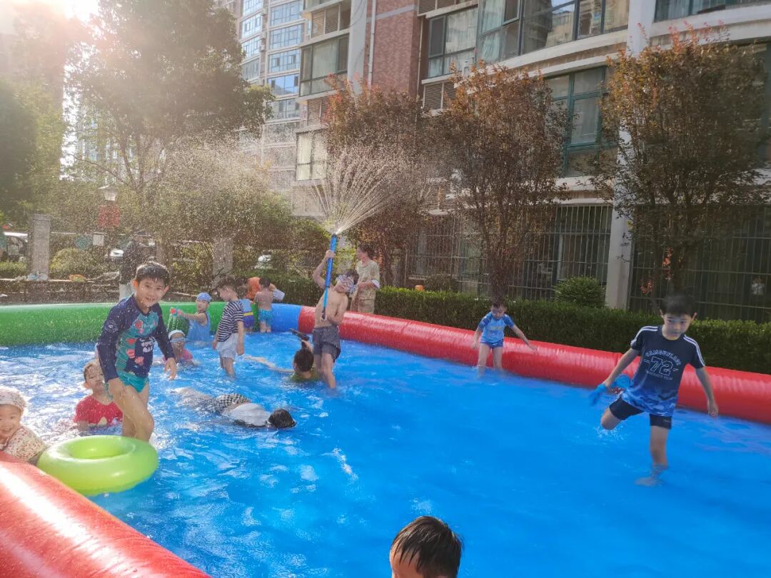 此次嬉水活动,成了孩子们的欢乐“战场”,小朋友们在水里追着、跑着、闹着、笑着,你朝我泼一脸水,我就挠你痒痒,咯咯的笑声和“哗啦啦”水花飞溅声缠在一起,把夏日闷热全赶跑,满池都是童年该有的疯玩模样~