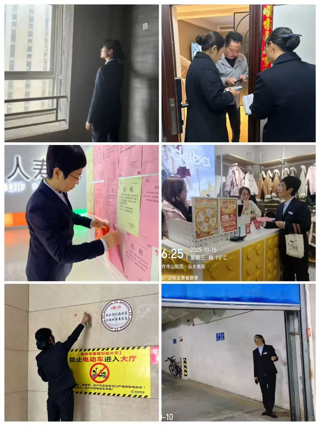客服楼宇管家持续开展日常巡查、装修监管及空置房检查工作,及时张贴安全提示与缴费通知,确保信息传达到位。