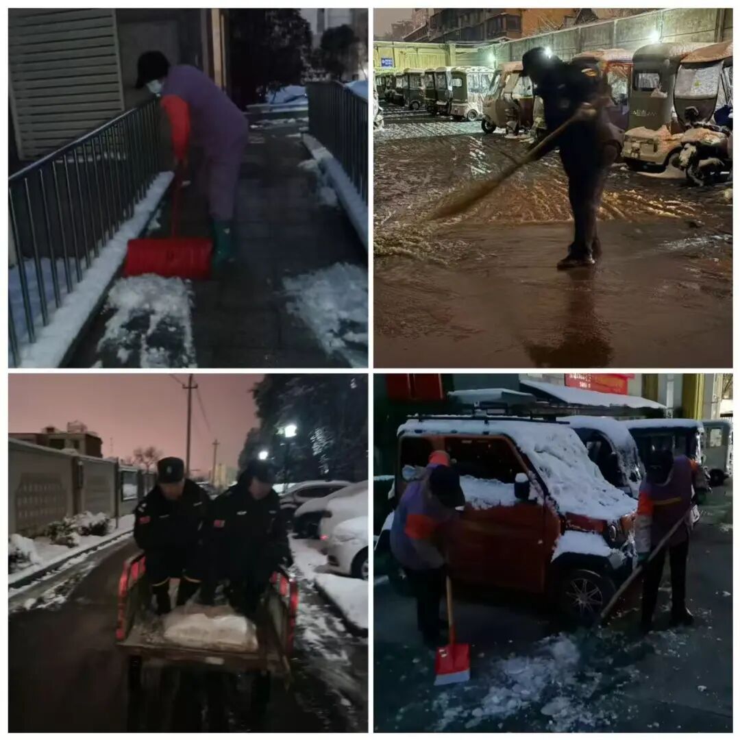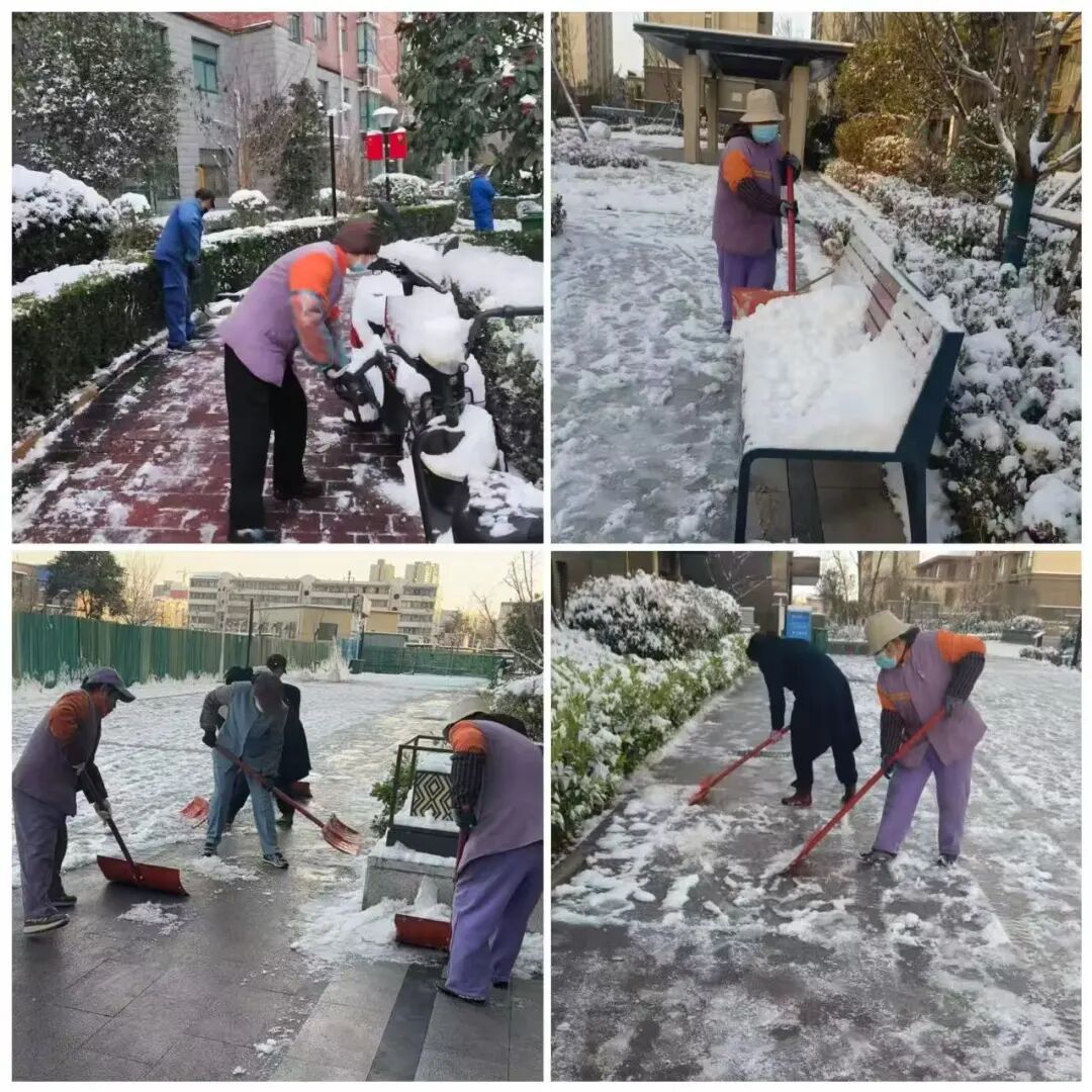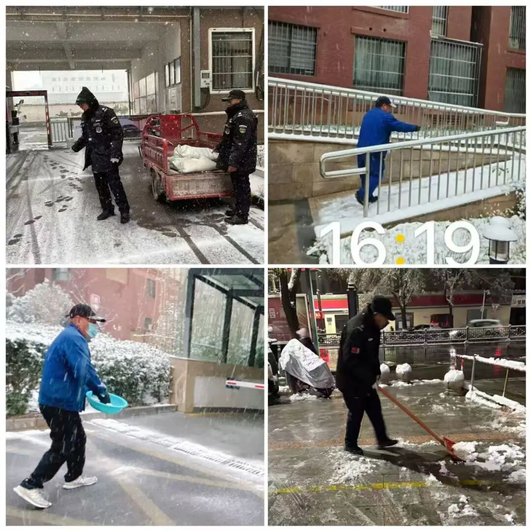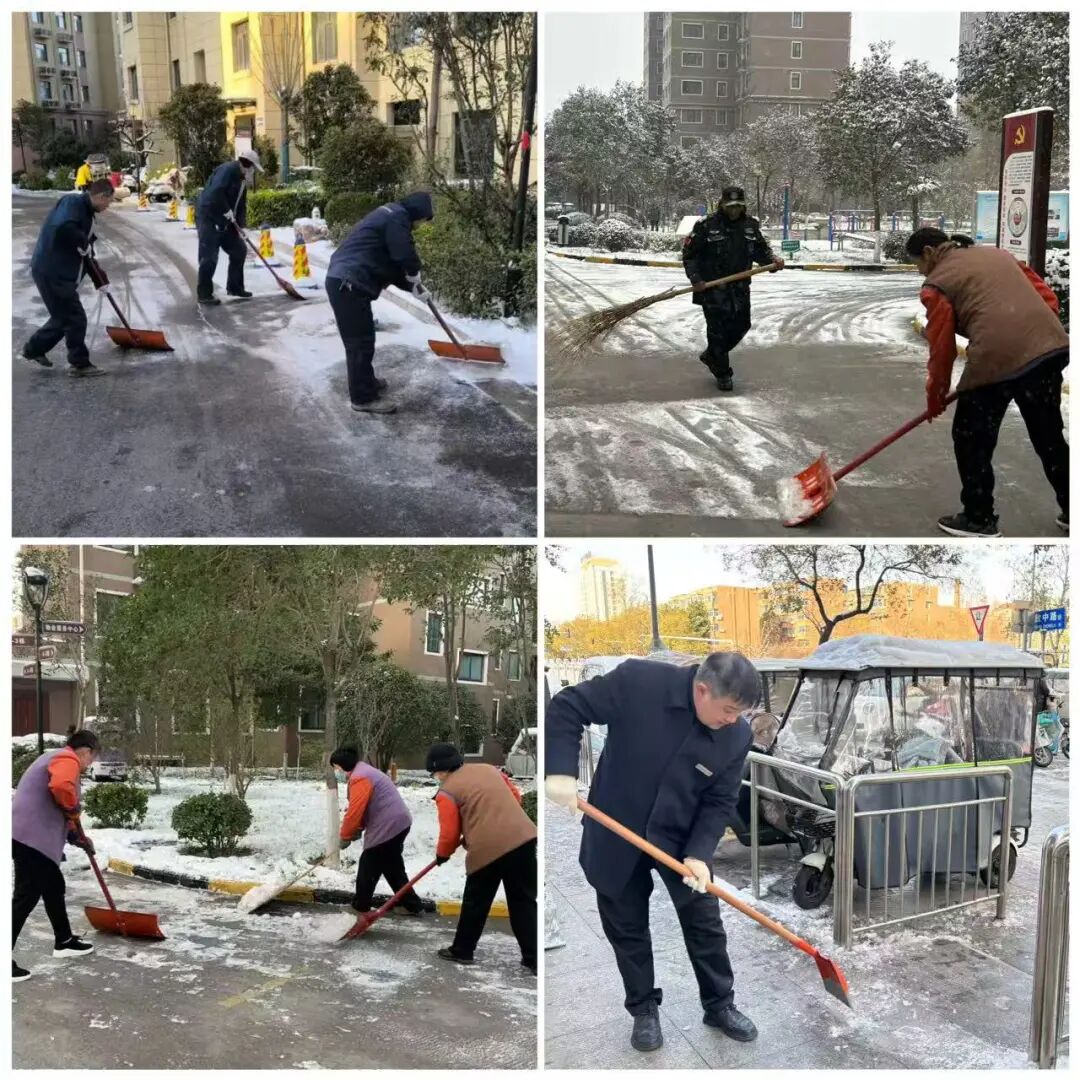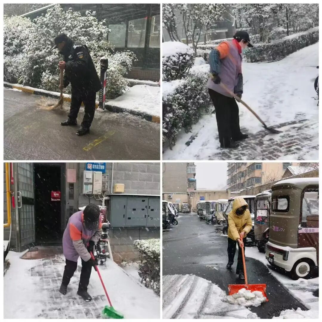 凛冽寒风中,物业工作人员全力清扫园区主干道、单元门口、电梯口等关键点位,不放过任何一处积雪结冰区域,争分夺秒打通出行通道。大家不畏严寒、分工协作,忙碌的身影成为雪天里最暖心的风景,用坚守与付出筑牢安全防线。